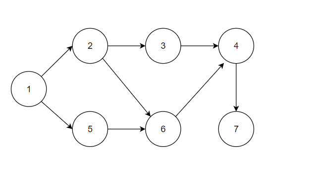 📍 위상 정렬은 여러 개의 답이 존재할 수 있다. 따라서 1 → 5 → 2 → 3 → 6 → 4 → 7도 하나의 답이 될 수 있다.